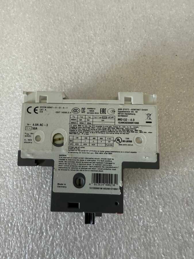 The ABB MO132-4.0 is a premium manual motor starter and motor protection circuit breaker (MPCB) designed to provide reliable protection and control for electric motors. With a rated current of 4.0A, this device is ideal for safeguarding small to medium-sized motors in various industrial and commercial applications. The MO132 series is renowned for its robust construction, ease of use, and high performance.