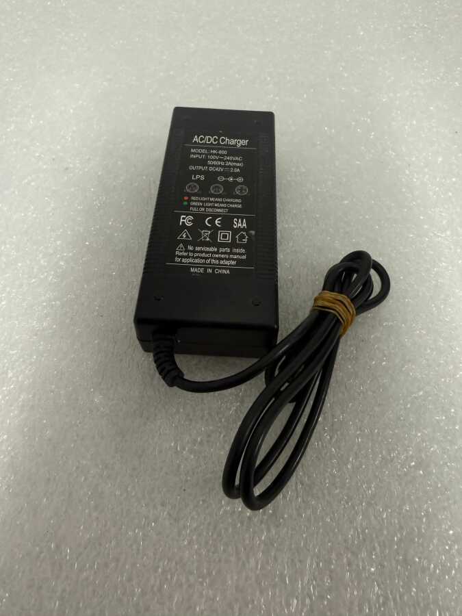 Adaptorul de alimentare AC/DC HK-800 42 V 2 A este un încărcător universal utilizat în principal pentru trotinete electrice, biciclete electrice, hoverboard-uri și alte dispozitive cu baterii Li-ion de 36 V (10 celule).